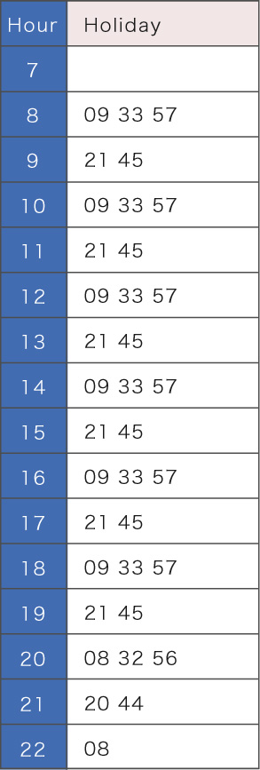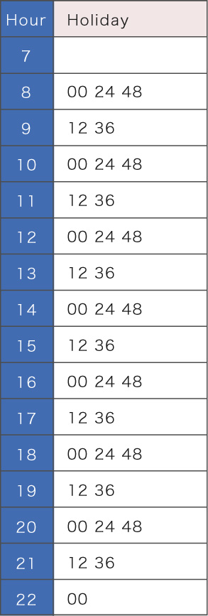 (Note) Because the bus operates exclusively for members until 10 AM on weekdays (between 7 AM and 10 AM), membership cards (comes with a fee) are required to board.